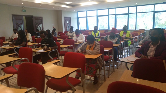Abanyeshuri bo muri Kaminuza ya Kigali ishami rya Musanze biyemeje kwiga birinda Covid-19(foto Ndayambaje J.C)